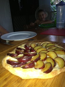 The dessert pizza reappeared, but this incarnation included some rather sour plums with a nice dark skin. I was really chuffed with how this turned out. The plums were delicious. It’s amazing how some fruits just explode into life after cooking, the skins seem to be the treasure box of flavour. I’m never that taken with blueberries until you cook the buggers. A decent sprinkle of vanilla sugar and some butter for, well, obvious reasons. Maybe I should try this with a